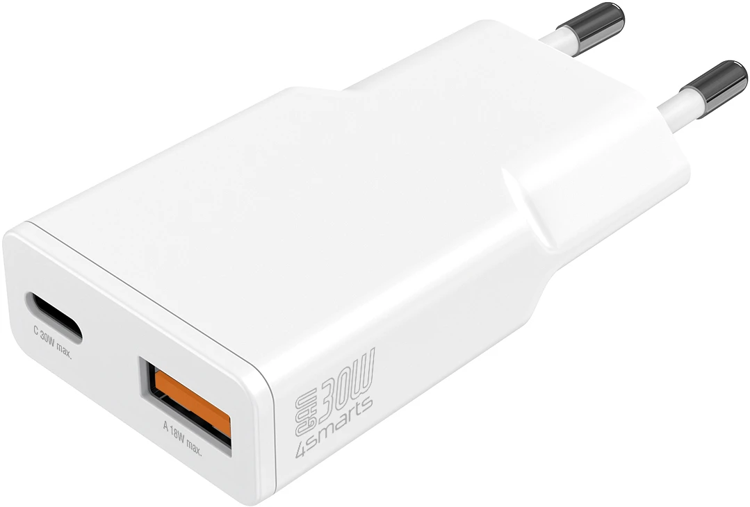 4Smarts Netzladegerät FlatPlug Slim Dual 45W GaN 2C Weiß