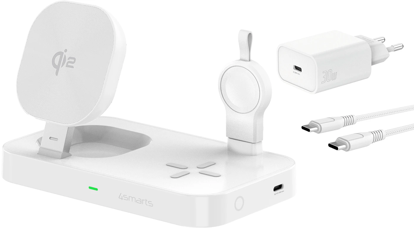 4Smarts Qi2 Ladestation Trident mit MFi Fast Charger für Apple Watch Weiß