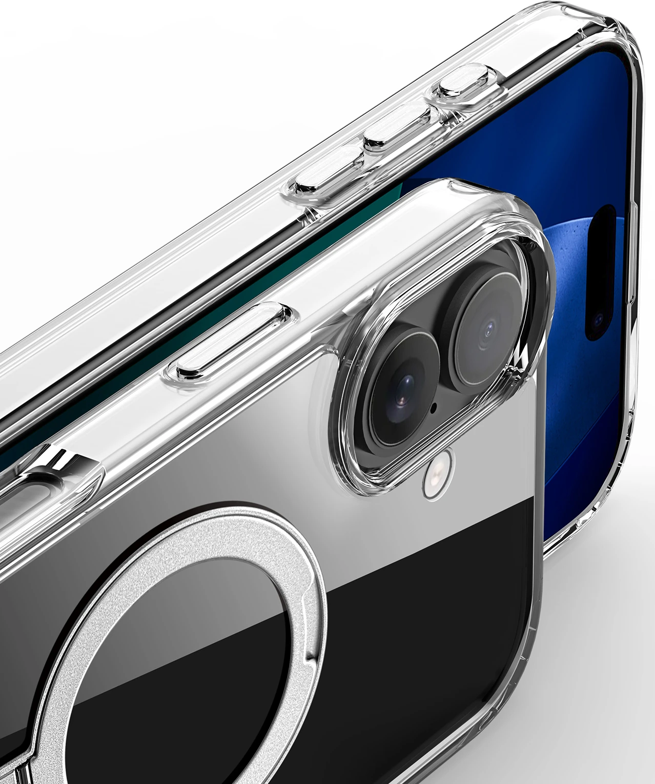 Durch den ausklappbaren Metallring, bietet das Case eine Standfunktion.