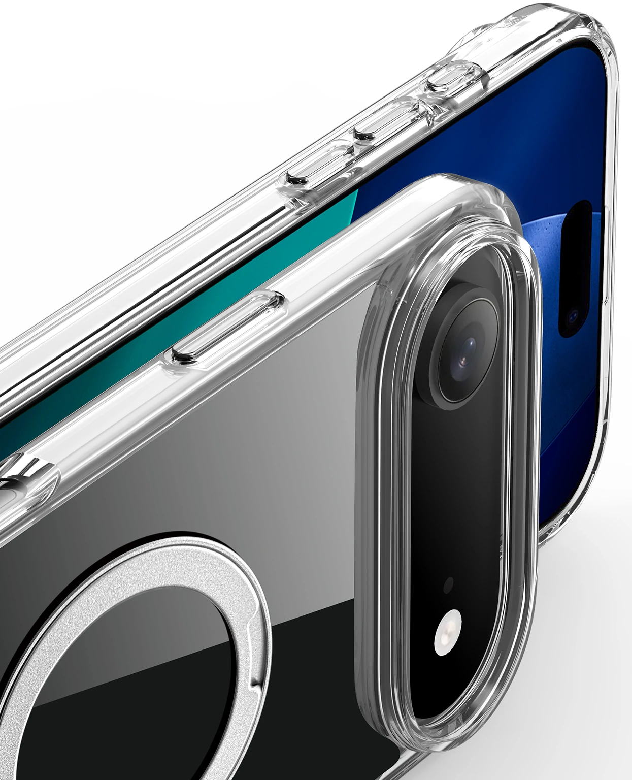 Durch den ausklappbaren Metallring, bietet das Case eine Standfunktion.