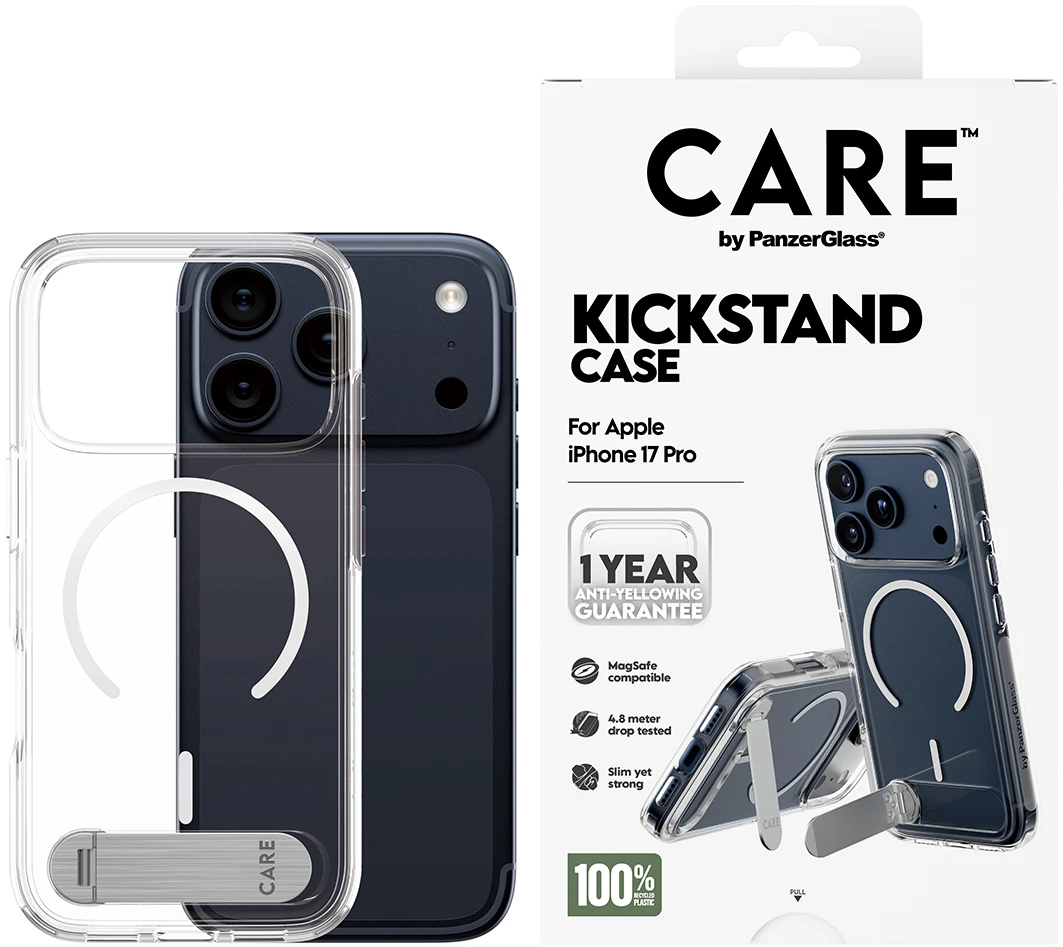 Phänomenaler Schutz. 3,6 Meter Falltest in allen Winkeln und Ecken. Hergestellt aus recyceltem Plastik. MagSafe kompatible und ohne Wenn und Aber: 1 Jahr Anti-Vergilbungs-Garantie. Diese schlanke und leichte schützende Hülle ist alles, wovon du jemals geträumt hast. Eines der am meisten erwarteten Produkte ist jetzt erhältlich. Entworfen, um praktisch zu sein. Diese Hülle verfügt über eine zusätzliche, vielseitige Kickstand-Funktion zum freihändigen Betrachten, sowohl vertikal als auch horizontal. So kannst du oder deine Kinder überall und jederzeit freihändig Filme schauen, streamen oder Yoga-Kurse besuchen. Außerdem bietet die Hülle einen verbesserten Schutz für die Kamera. DARE TO CARE CARE ist eine verspielte und schützende internationale Tech- und Lifestyle-Marke, die aus den hochwertigsten Materialien hergestellt und von Mode-, Kunst- und Musiktrends beeinflusst wird. Wir kümmern uns um Menschen und die Welt, in der wir leben. Wir legen Wert auf Nachhaltigkeit und Selbstdarstellung. Wir kümmern uns um Technik und die Lebensdauer von Technik. Verwandle dein Handy in ein stilvoll geschütztes Accessoire. Zeig der Welt, dass du dich um sie sorgst.